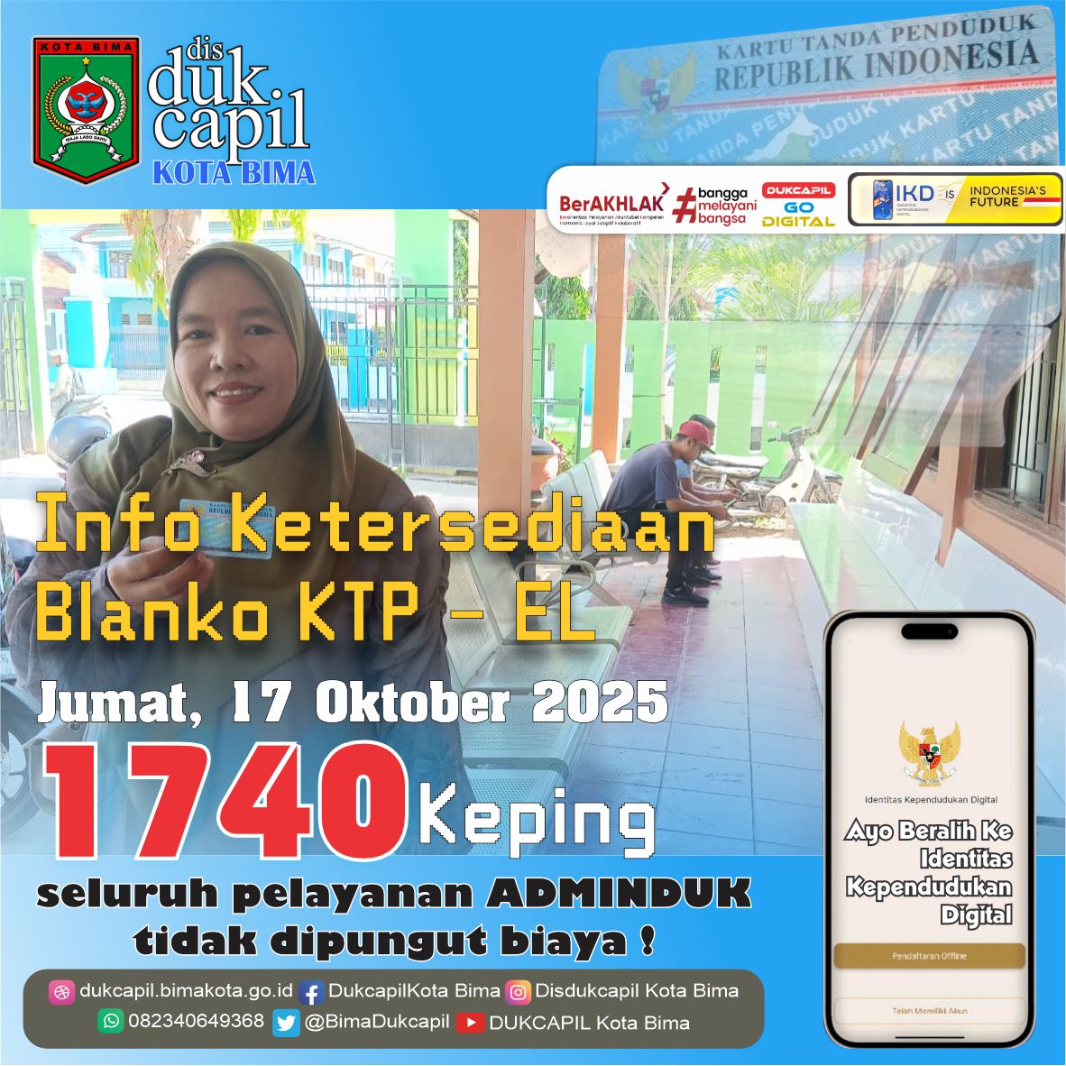 Info Ketersediaan Blanko KTP EL Hari Jumat 17 Oktober 2025
