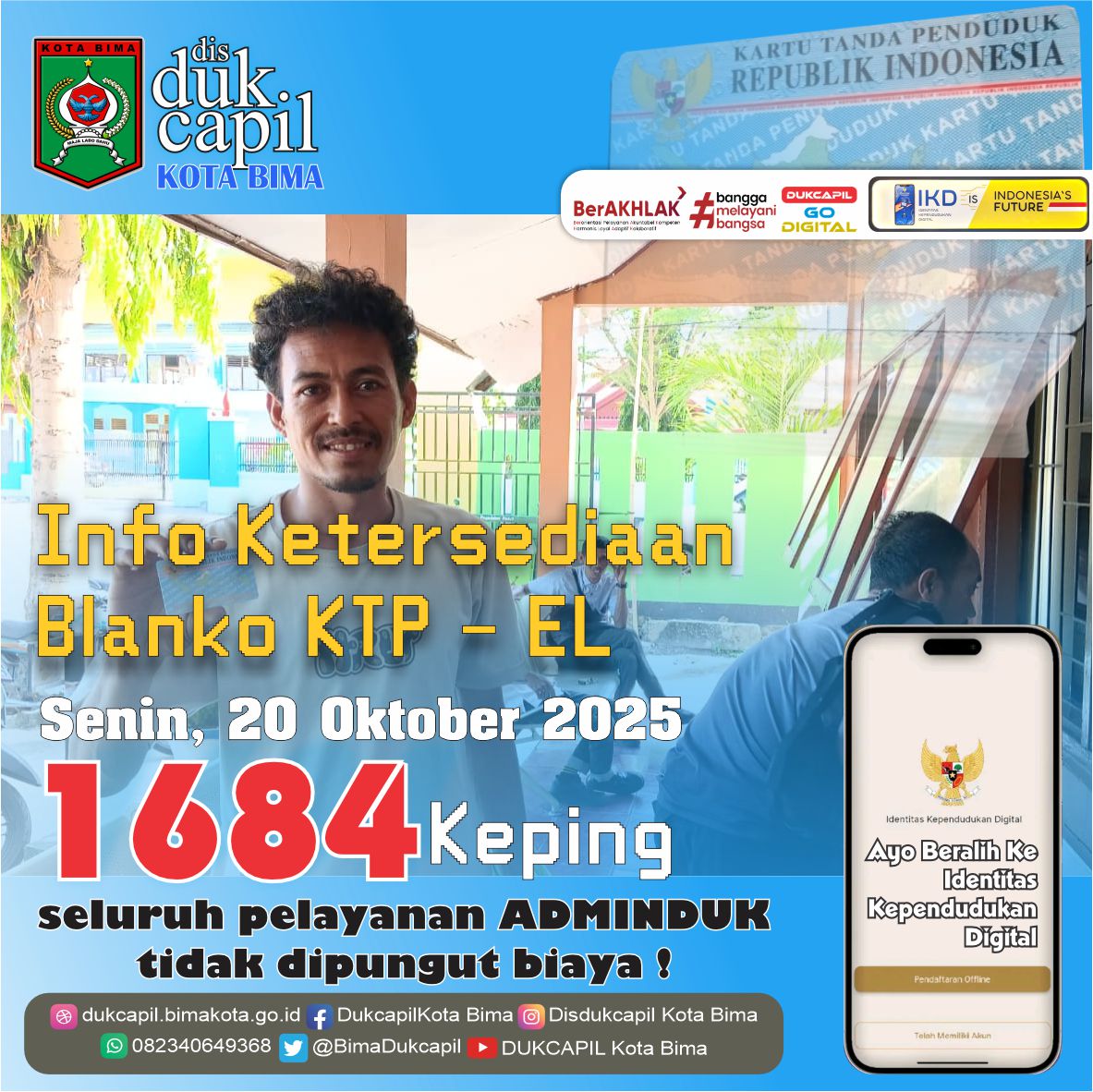 Info Ketersediaan Blanko KTP EL Hari Senin 20 Oktober 2025