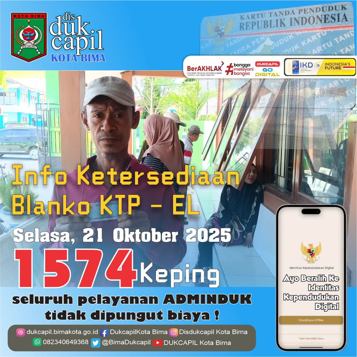 Info Ketersediaan Blanko KTP EL Hari Selasa 21 Oktober 2025