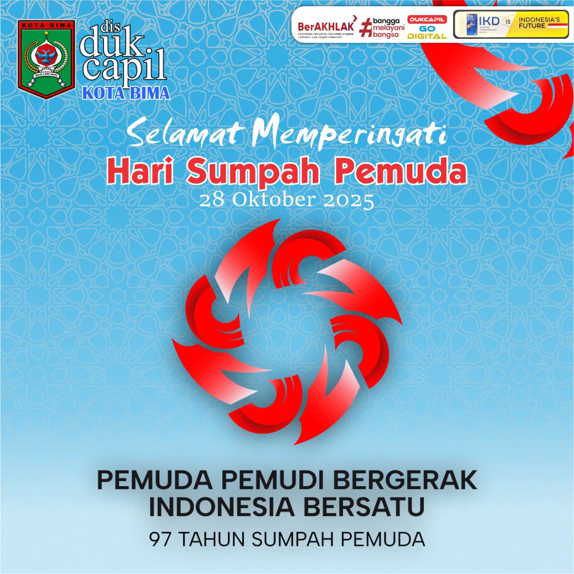 Dinas Kependudukan dan Pecatatan Sipil Kota Bima mengucapkan Selamat Memperingati Hari Sumpah Pemuda yang ke 97, 28 Oktober 2025.