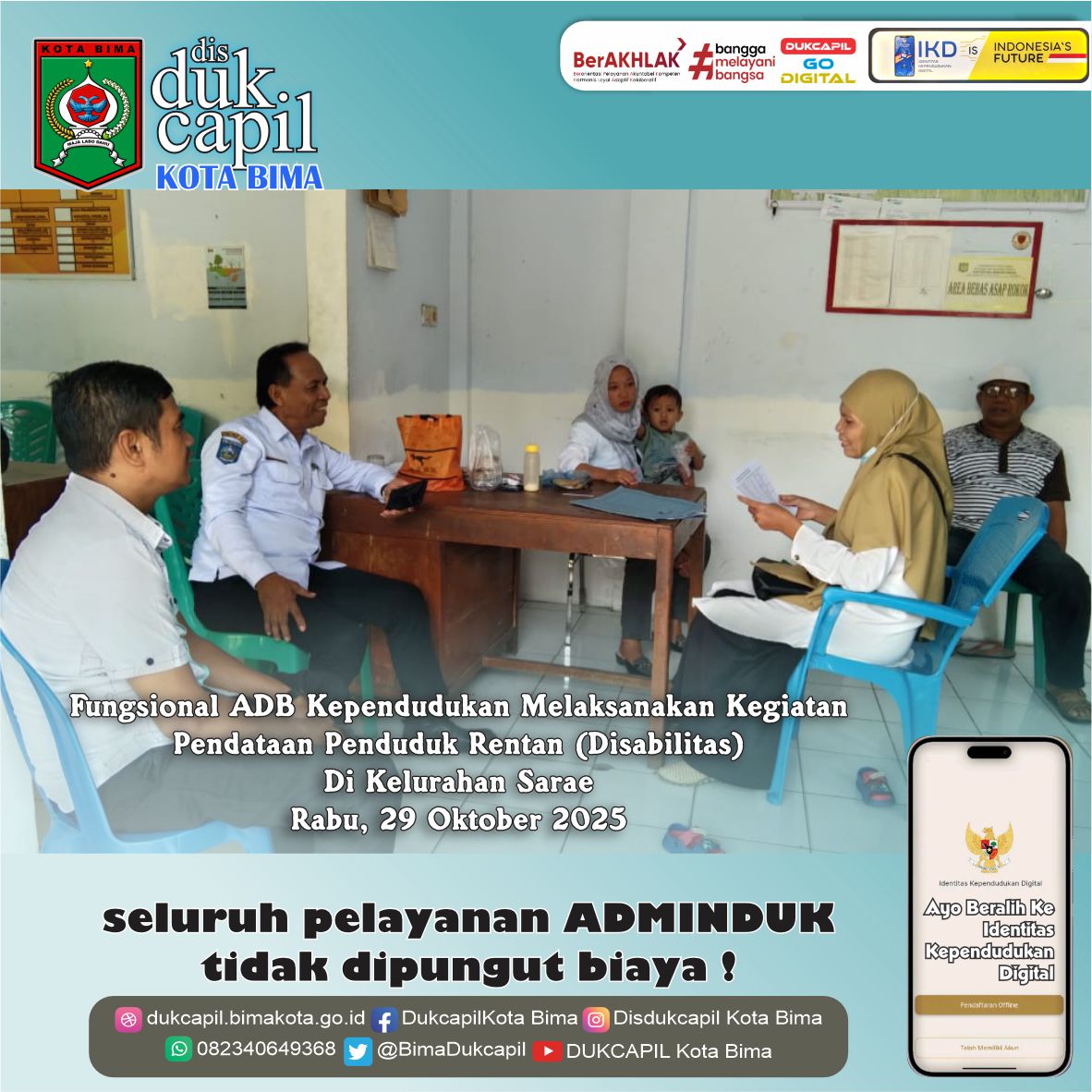 Fungsional ADB Kependudukan Melaksanakan Kegiatan Pendataan Penduduk Rentan (Disabilitas) Di Kelurahan Sarae. Rabu, 29 Oktober 2025.