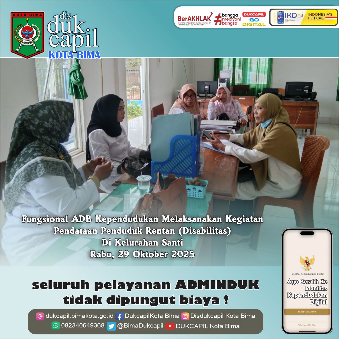 Fungsional ADB Kependudukan Melaksanakan Kegiatan Pendataan Penduduk Rentan (Disabilitas) Di Kelurahan Santi. Rabu, 29 Oktober 2025.