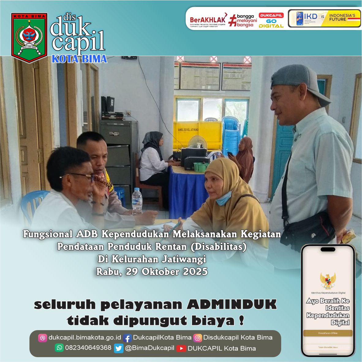 Fungsional ADB Kependudukan Melaksanakan Kegiatan Pendataan Penduduk Rentan (Disabilitas) Di Kelurahan Jatiwangi. Rabu, 29 Oktober 2025.