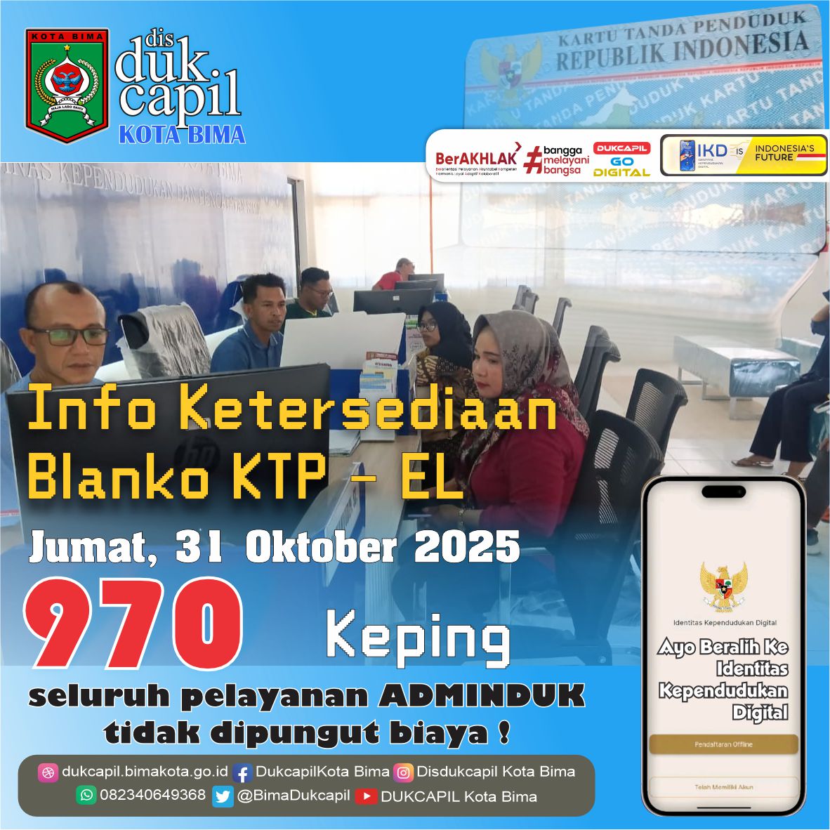 Info Ketersediaan Blanko KTP EL Hari Jumat 31 Oktober 2025