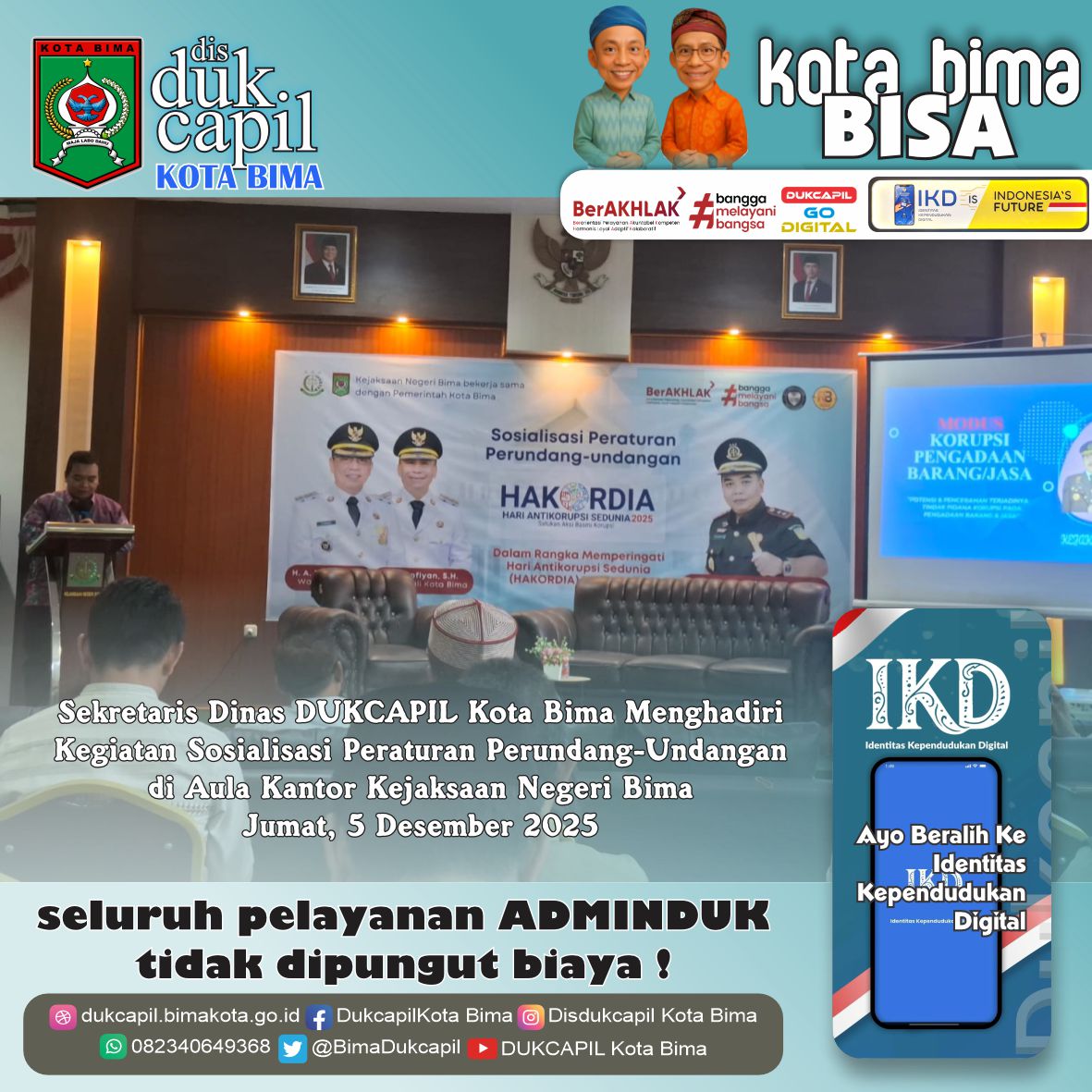 Sekretaris Dinas DUKCAPIL Kota Bima Menghadiri Kegiatan Sosialisasi Peraturan Perundang-Undangan di Aula Kantor Kejaksaan Negeri Bima. Jumat, 5 Desember 2025.