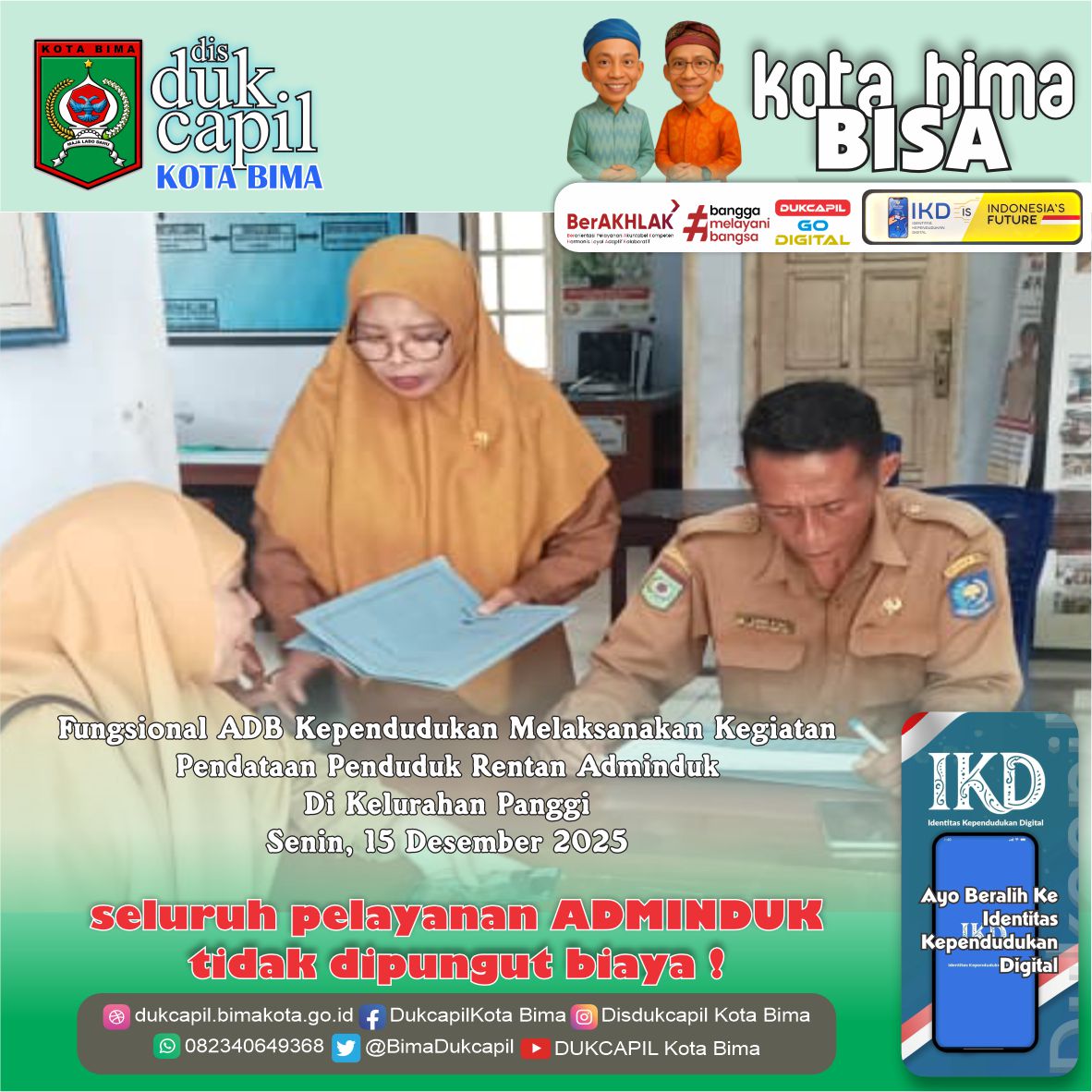 Fungsional ADB Kependudukan Melaksanakan Kegiatan Pendataan Penduduk Rentan Adminduk di Kantor Kelurahan Panggi, Senin 15/12/2025.