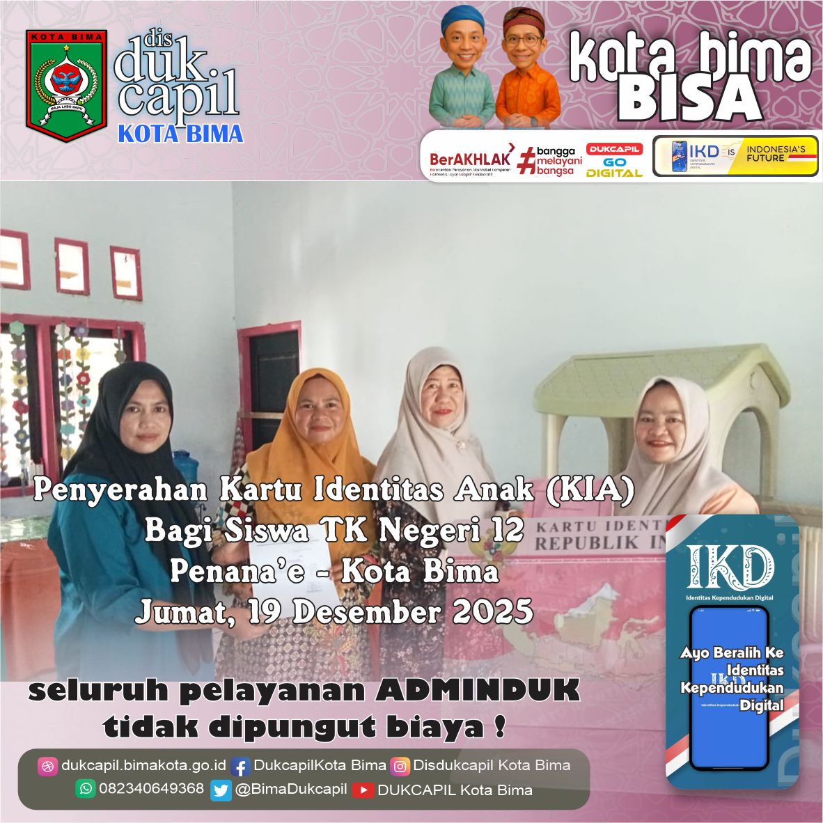 Penyerahan Kartu Identitas Anak (KIA) Bagi Siswa TKN 12 Penana'e - Kota Bima. Jumat, 19 Desember 2025.