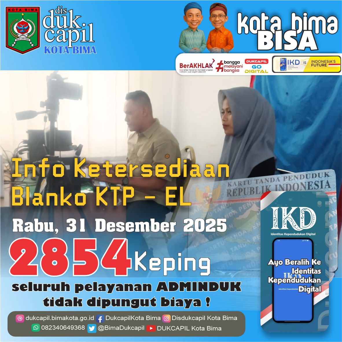Info Ketersediaan Blanko KTP EL Hari Rabu 31 Desember 2025