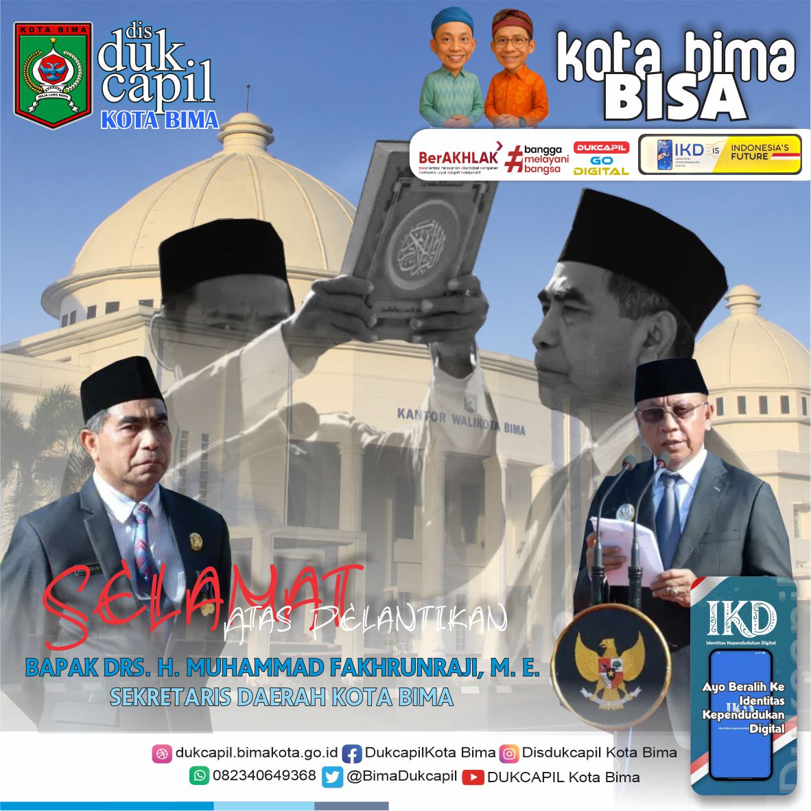 Keluarga Besar Dinas Kependudukan dan Pencatatan Sipil Kota Bima mengucapkan Selamat Atas Pelantikan Bapak Drs. H. Muhammad Fakhrunraji, M. E. Sebagai Sekretaris Daerah Kota Bima.